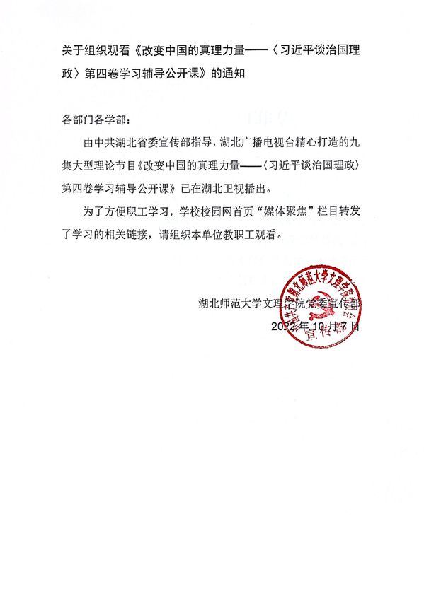 关于组织观看《改变中国的真理力量——〈习近平谈治国理政〉第四卷学习辅导公开课》的通知