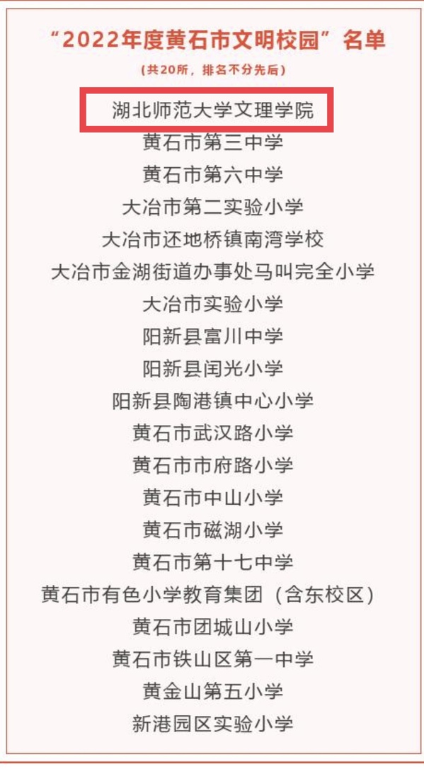 本网讯(通讯员 柯康敏)近日,市委文明办公布“2022年度黄石市文明校园”名单,玩球(中国)再次获评。这是玩球(中国)继获评“2021年度黄石市文明校园”称号之后,精神文明建设工作取得的又一重大标志性成果。