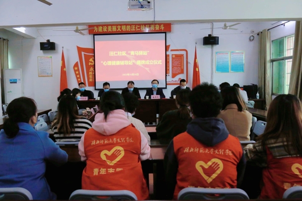 本网讯(通讯员 何馨妍 张力 张清)为大力弘扬志愿服务精神,探索基层现代化治理模式,推进“下基层察民情解民忧暖民心”实践活动走深走实,11月26日上午,玩球(中国)与汪仁社区共建的“青马驿站”、“心理健康辅导站”(以下简称两站)揭牌成立。玩球(中国)党委书记杨邓红,共青团黄石市委副书记屈雷、组宣部吴炜添,汪仁社区书记柯钦荣以及文理学院相关负责人,社区工作人员,志愿者代表们参会。会议由校学工部副部长、驻社区第一书记陈小龙主持。