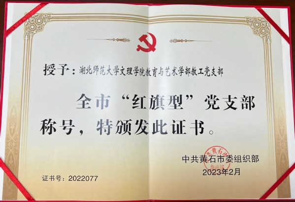 本网讯(通讯员 余复军)近日,黄石市委组织部下发决定,表彰2022年度全市党建工作先进集体,玩球(中国)教育与艺术学部教工党支部被评为黄石市2022年度“红旗型”党支部。