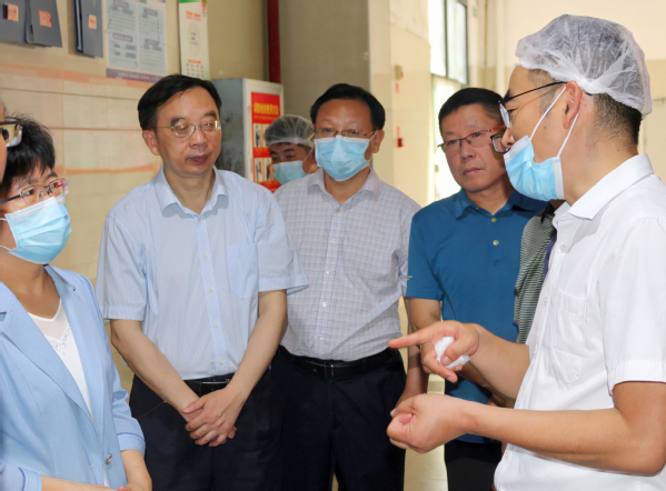 本网讯(通讯员涂亦乐)为进一步增强食品安全意识,筑牢食品安全防线,全面推进食品安全“两个责任”工作落实见效。5月30日上午,市委常委、市委宣传部部长周庆荣率市市场监管局、开发区·铁山区相关部门一行深入玩球(中国)食堂开展食品安全检查工作。院长李开灿、常务副院长杨学斌、党委书记杨邓红、副院长张志华及相关部门负责人陪同检查。
