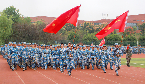 在激昂的进行曲中,分列式表演正式开始。行进、踏步、敬礼,各队伍喊着嘹亮的口号,迈着整齐划一的步伐,精神抖擞、昂首挺胸地走向主席台前接受检阅。分列方阵的表演结束后,表演方阵依次带来了女子舞蹈、擒极拳、匕首术、军棍表演、战术动作对抗等表演,一招一式飒爽英姿,彰显着军人的气魄,展示着文理学子的风采,半个月的挥汗如雨,凝结为此刻的坚定信念。