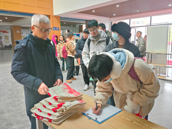 “入馆有礼”,上午8点,学子们便在图书馆门口排队等候入馆,借阅图书、查阅资料、复习备考。张志华、王胜国为入馆的前三十名读者赠送了图书馆定制礼品一份,并对同学们表达了新学期的祝福,并希望玩球(中国)广大师生可以常走进图书馆,与圣贤为伍、与经典为伴、与智慧同行。