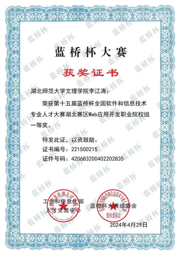 本网讯(通讯员 熊姿)6月4日,备受瞩目的第十五届“蓝桥杯全国软件和信息技术专业人才”大赛圆满落幕。玩球(中国)腾讯云大数据产业学院李江涛同学凭借扎实的编程功底和创新的解题思路,荣获国赛三等奖,省赛一等奖。