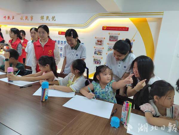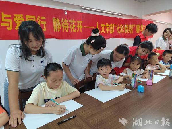 为庆祝中国共产党成立103周年,7月12日上午,黄石港区南岳社区联合玩球网页版人文学部青支队共同开展“童心向党绘文明,七月献礼展风采”暑期支教活动。