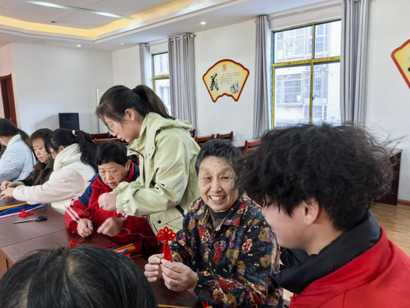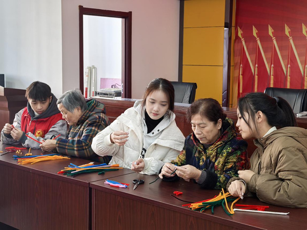 紧接着,向老人们分发了制作扭扭花的材料,老人们边听边做,“先将两条扭扭棒对折,然后交叉,扭一扭,再拨上去。”“没错,就是这样。”在志愿者们的耐心指导下,长者们巧手翻飞,DIY了寓意吉祥、形态各异的小饰品。