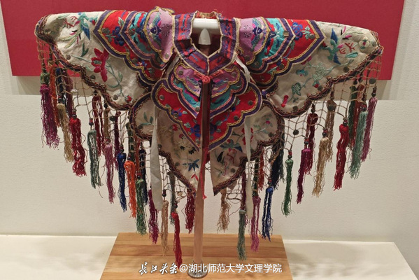 在武汉博物馆,一件代表性的云肩让小队所有人屏息驻足,这件以“天圆地方”为构型的绣品,用色多达二十八种,金线盘绕的如意云纹间游走着五毒纹样,暗合楚人“乘云气,御飞龙”的浪漫想象。