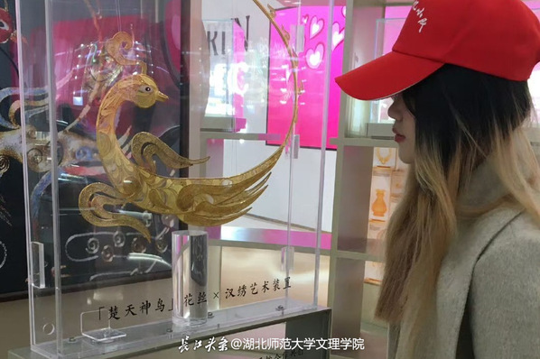 在武汉万象城,潮宏基汉绣×花丝镶嵌跨界艺术特展让队员们感受到了非遗的时尚蜕变。小队聚焦汉绣与花丝镶嵌的工艺融合案例,研究传统纹样如何通过现代设计转化为时尚首饰与艺术装置。这一创新模式为汉绣开拓了高端消费品与艺术收藏的新路径,展现了非遗“活化”的无限可能。