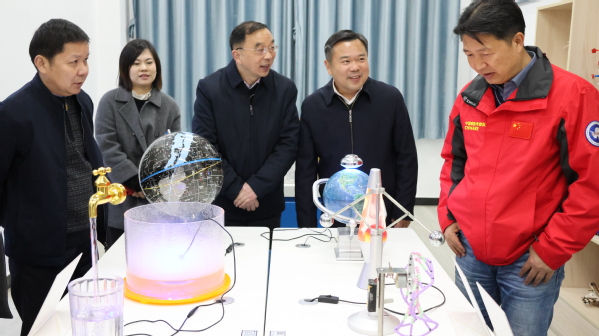 沈权一行对玩球(中国)科普实训基地硬件建设给予了高度的评价,对基地服务社会表示肯定,希望学校充分发挥科普基地功能,助力青少年科普实践教育。