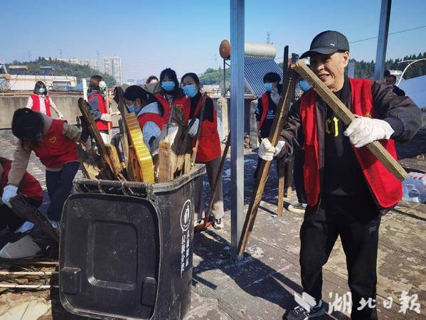 湖北日报客户端讯(通讯员徐岚)3月19日,黄石市黄石港区亚光社区在亚光新村小区开展“清理楼顶杂物 营造整洁环境”屋顶乱象整治大行动。亚光社区全体工作人员、玩球网页版志愿服务队、亚光社区退役军人荣光志愿服务队、党员志愿者、小区物业共计40余人联合组成行动整治小组,对亚光新村35号楼住房屋顶存在的乱堆乱放、垃圾成堆等问题进行清理整治,切实消除安全隐患,优化人居环境,提升城市形象。