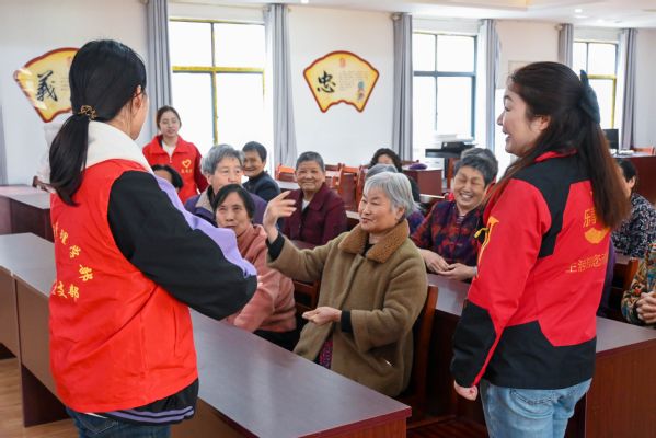 在健脑手指操教学环节,志愿者采用讲解+示范+互动的模式,耐心指导老人学习每一个动作。教学过程中,志愿者还创新运用意象引导法,例如将甩手动作形象比喻为给花儿洒洒水,将十指对压比作鼓掌欢迎,使抽象的动作要领变得生动有趣。现场老人们积极参与,跟随节奏反复练习,气氛热烈。健脑手指操通过对手部穴位的刺激,促进老年人大脑的血液循环,每天做健脑手指操可以预防脑卒中。