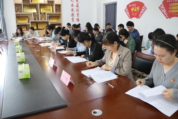 教师代表鲁千霞、库鑫鑫结合自身教学实践作表态发言。鲁千霞表示,要以“四有”好教师为标准,将师德要求融入教育教学全过程;库鑫鑫提出“尊重学生差异、终身学习、廉洁从教”的实践路径,呼吁全体教师以德立身、以德立学、以德施教。