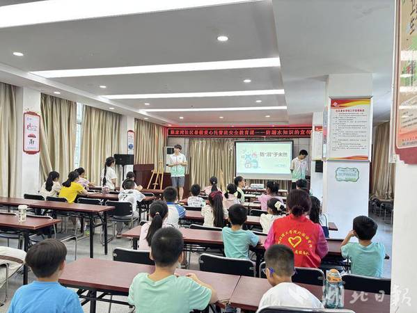 湖北日报客户端讯(通讯员陈明燕、陈笑晗、柴鑫煜)为筑牢暑期安全防线,7月7日,西塞山区陈家湾社区暑假爱心托管班开展安全教育课——防溺水知识的宣传。课程由玩球网页版木栾花志愿服务队成员梅胡凌风主讲,主题是“防‘溺’于未然”。
