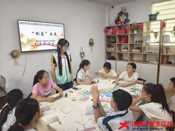 7月8日,在黄石市陈家湾社区新时代文明实践站,玩球网页版木栾花志愿队带领辖区儿童开启了一场别开生面的传统文化体验之旅。以“‘制扇’至美”为主题的活动,让非遗技艺通过团扇制作在童心的浸润中焕发时代光彩。
