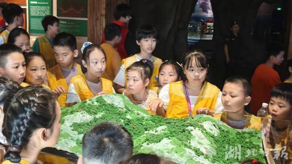 在讲解员的引导下,孩子们好奇地观察着馆内的各类展品,从形态各异的矿石标本到逼真的地质模型,每一件展品都吸引着孩子们的目光。讲解员耐心细致地为孩子们讲解着地球的演变、矿石的形成等知识,孩子们认真聆听,还不时提出自己的疑问,现场互动频繁。