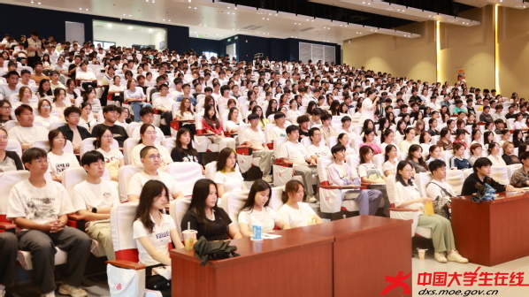 线下主会场设在学术交流中心,线上通过“玩球网页版”视频号同步直播,实现全覆盖。有观看直播的新生说:“虽然没能到现场,但直播效果很好,还能发弹幕和同学交流。”
