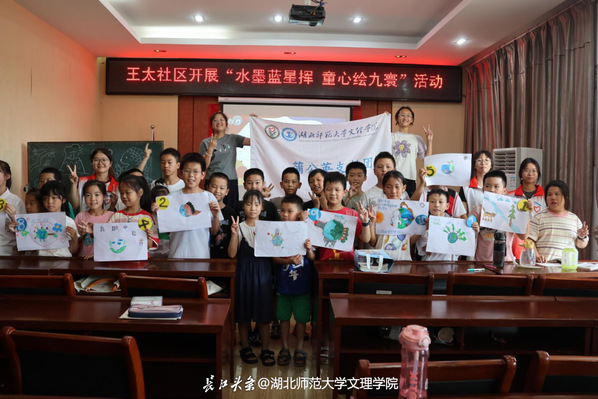 2025年暑假,玩球网页版蒲公英支教团走进黄石市王太社区,开展“水墨蓝星挥,童心绘九寰”环保主题实践活动,以趣味互动播撒环保种子,用创意画笔点亮绿色理念。