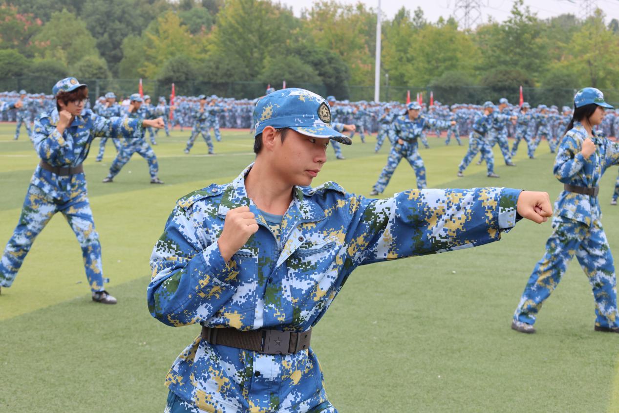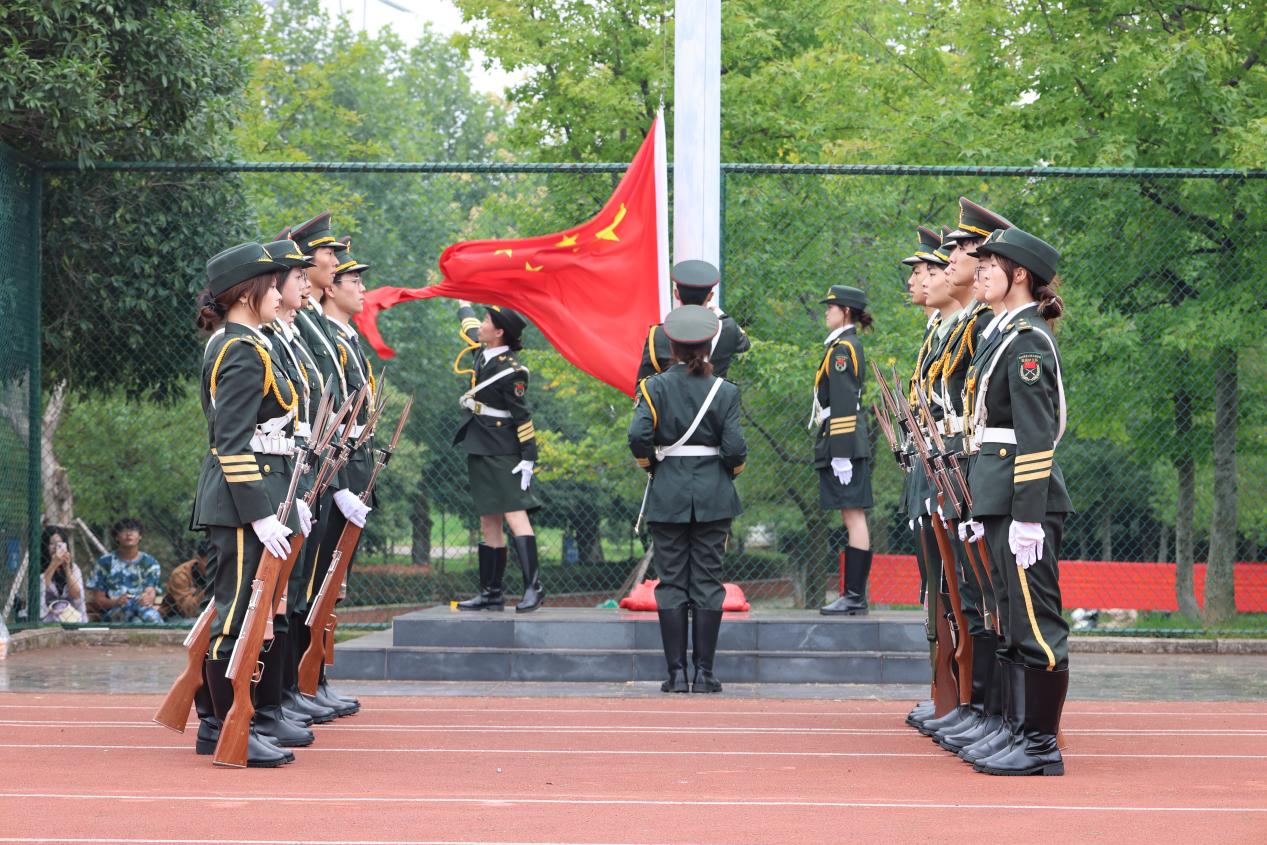 随后的军训成果汇报环节将现场气氛推向高潮。军体拳方阵动作精准,气势如虹;49个受阅方阵身着戎装,迈着铿锵有力的步伐依次通过主席台,口号声响彻云霄。集体合唱《歌唱祖国》深情献礼国庆,展现了新一代学子的昂扬斗志。