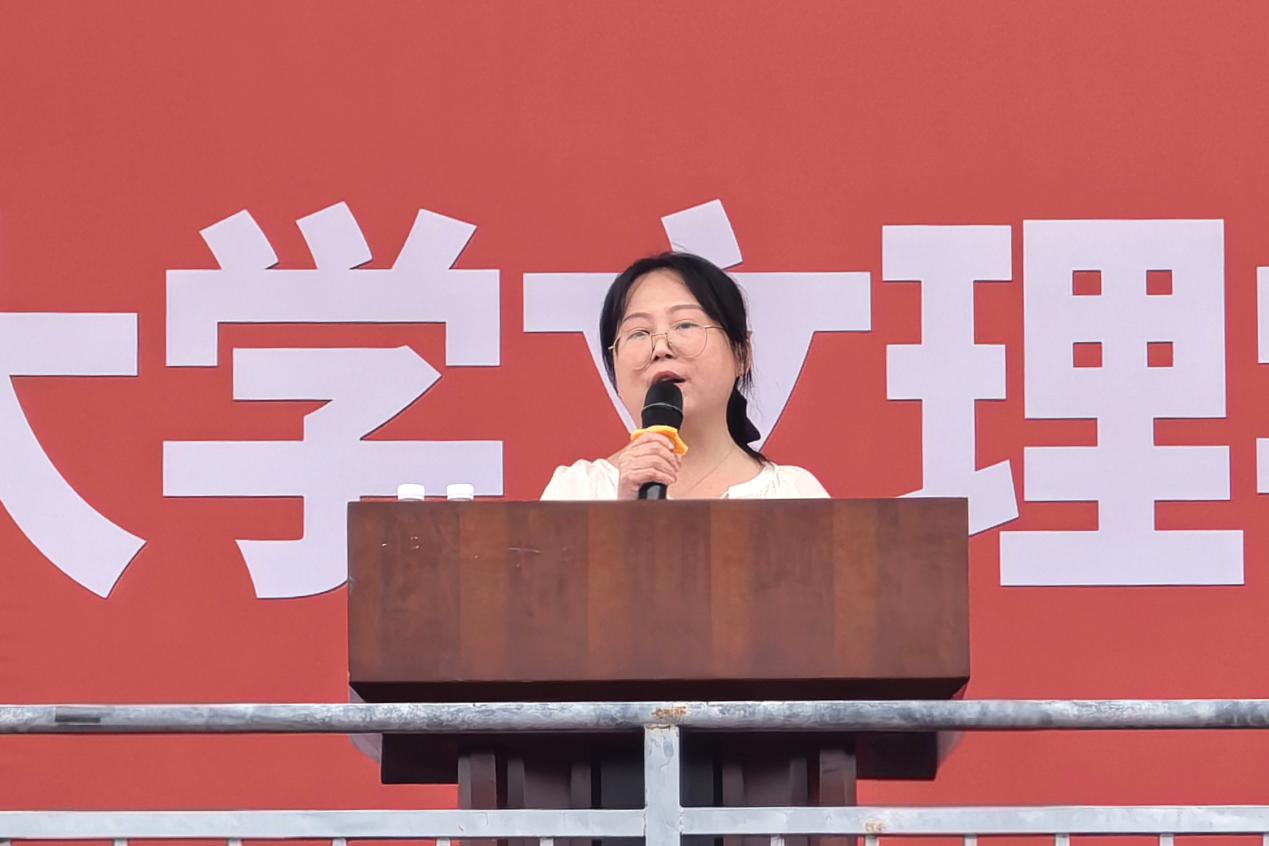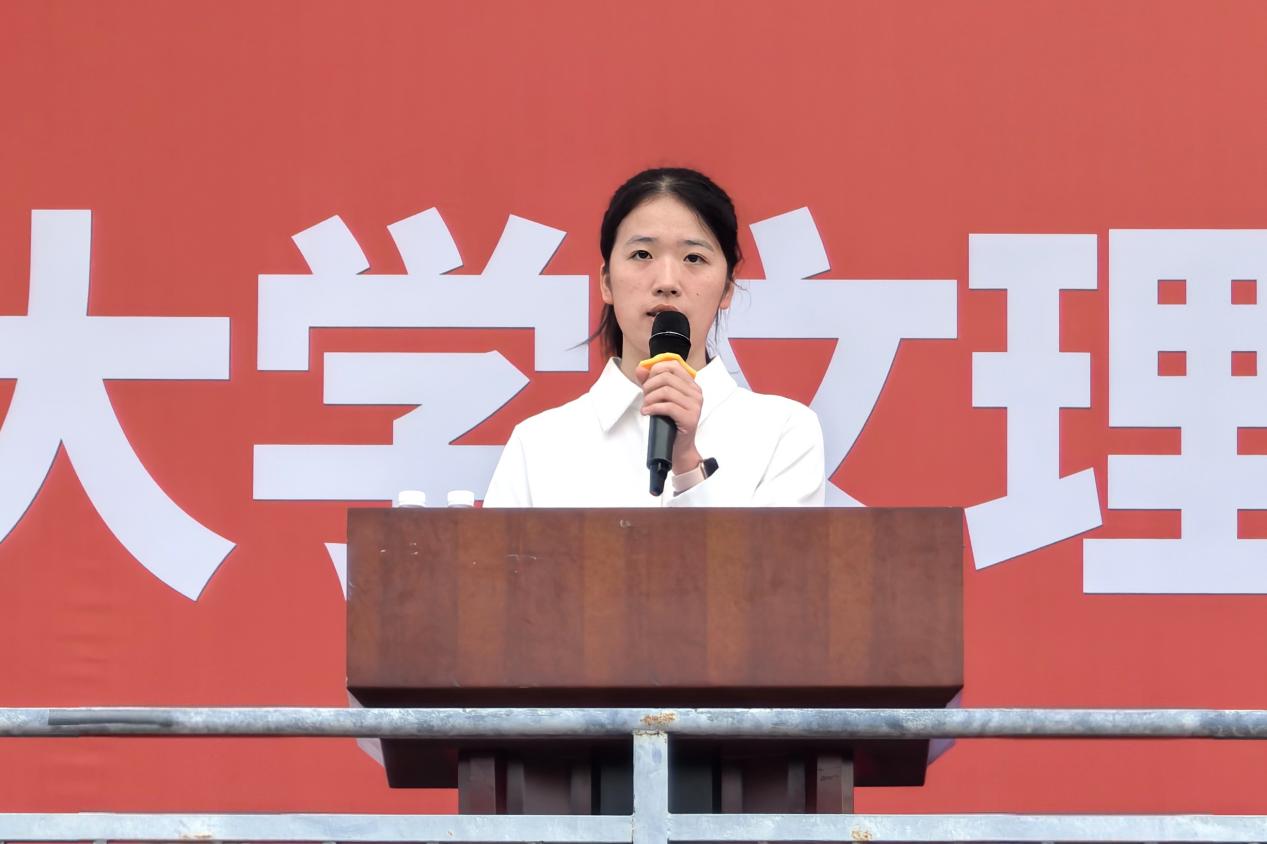 新生代表赵淑娴在发言中倡议同学们知己善学、尊师重道,并与全体新生共同许下“为校添彩、为国献力”的青春誓言。老生代表廖婧凤、教师代表盛茜分别从同辈和师长的角度,分享了成长感悟与殷切嘱托。