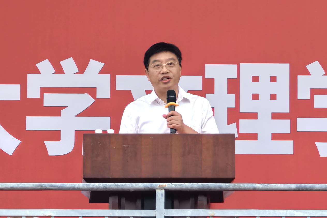 湖北师范大学党委常委、文理学院分管校长肖六亿在总结讲话中,以“时不我待”勉励全体新生。他寄语同学们胸怀家国,做好人生规划;勤读“有字、无字、心灵”三部大书;锤炼品德,学会尊重与包容;并勇于创新,敢于担当,在大学这一黄金阶段实现全面发展。