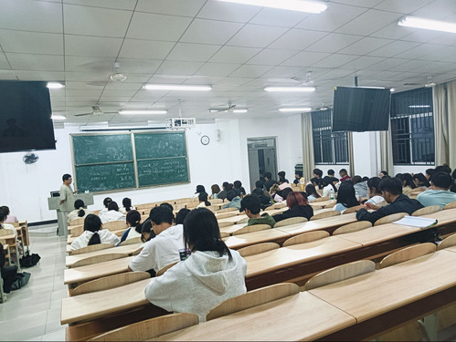讲座开始前,曾老师强调身为心理委员,在日常生活中观察周围同学的重要性,并带领同学们一起进行两次观察练习。他分别邀请了两组同学上台即兴表演,曾老师从语言、行为、情绪、面部表情等方面,分析小动作下的潜意识,引导各位同学如何判断周围同学是否有异常。随后便正式进入今天的主题:“大学常见心理问题解答”。首先,曾老师邀请同学们在黑板上写下自己在进入大学生活后遇到的问题,同学们纷纷踊跃参加。曾老师根据黑板上同学们所写的日常生活中出现的问题进行一一解答,比如:当班级里有两位同学闹矛盾了,该如何处理;如何适应大学新环境;怎样和同学相处等等。曾老师从多方面向同学们提供了解决思路,为心理委员提供了一系列常见心理问题的应对方法,使其能在班级内部出现问题的时候能采取有效的应对方式,去更好的处理班级中出现的各种问题。