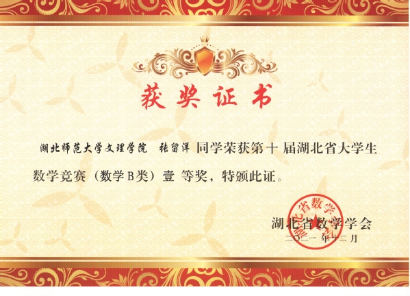 第十届湖北省大学生数学竞赛玩球(中国)获奖名单: