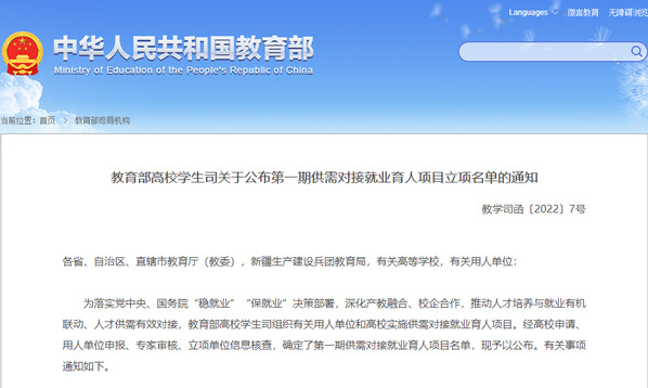 教育部第一期供需对接就业育人项目玩球网页版立项名单