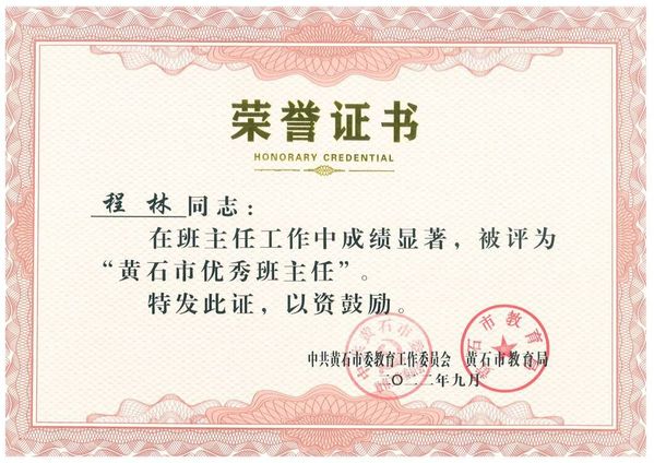 本网讯 秋风送爽果飘香,金声玉振誉满园。在中共黄石市委教育工作委员会、黄石市教育局2022年度优秀评选中,玩球(中国)荣誉榜再添新篇。谨向以下教工表示祝贺!