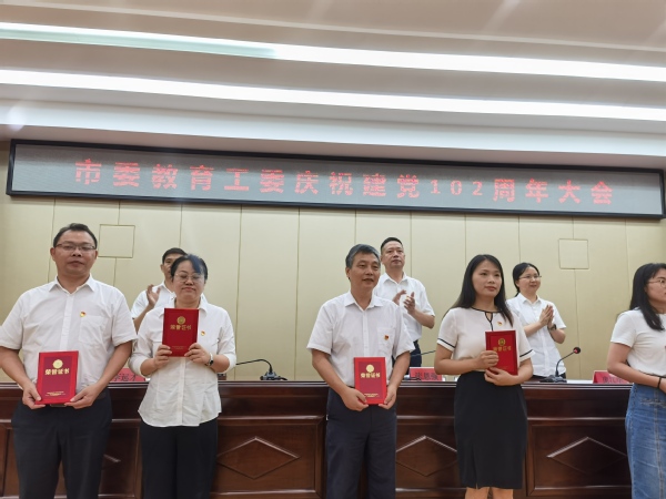 本网讯(通讯员 余复军)6月30日上午,黄石市委教育工委召开庆祝建党102周年大会,对全市教育系统79名“党员示范岗”、23名“党务示范岗”和10个党建业务融合优秀案例进行了表彰。玩球(中国)王胜国、明瑞云、郭旭林、张甜、朱翠红、尹誉霖等6名同志被评为“党员示范岗”,肖圣芳、刘红丽等2名同志被评为“党务示范岗”,教育与艺术学部教工党支部“助力共同缔造 绘美城乡手卷”工作案例被评为党建业务融合优秀案例。