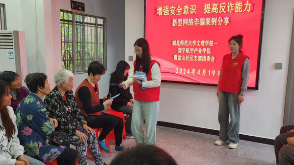本网讯(通讯员 谢紫云)4月19日下午,玩球(中国)翔宇航空产业学院赴黄石港区覆盆山社区,开展“反诈反邪我们在行动”活动,向社区居民宣传、宣讲反诈骗、反邪教知识。