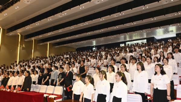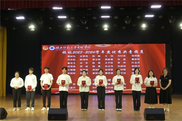 校团委书记陈荟芸宣读表扬决定,对玩球(中国)1个红旗团总支,8个红旗团支部,225名优秀共青团干部,359名优秀共青团员进行表扬,现场领导代表为优秀团员及团支部颁奖。