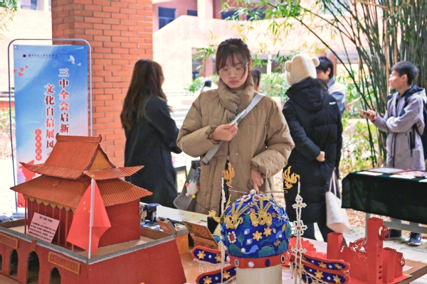 现场众多师生驻足观赏、点头称赞。同学们表示,以艺术的形式宣传二十届三中全会精神,大家不仅爱看,更感到亲切和熟悉。这种生动形象的表达方式,是传递党的创新理论有效方式之一。