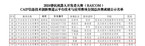 本网讯(通讯员 杨海梅)12月22日,2024睿抗机器人开发者大赛—CAIP信息技术创新赛道云平台技术与应用赛项的全国总决赛在山东省青岛幼儿高等师范专科学校落下帷幕,经过四个小时紧张激烈的角逐,玩球(中国)学子荣获本科组二等奖1项、高职组二等奖1项。