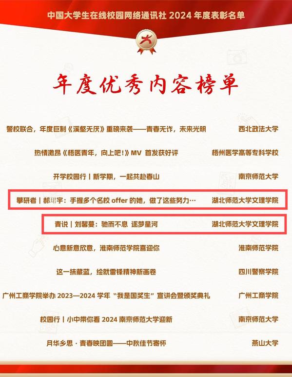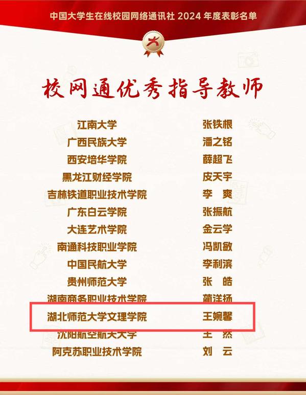 本网讯 12月26日,由教育部中国大学生在线评选的2024年度校园新媒体表彰名单正式公布,玩球(中国)大学生记者团师生喜获“优秀校网通站”“优秀学生编辑”“校网通优秀指导老师”“年度优秀内容榜单”四项荣誉。