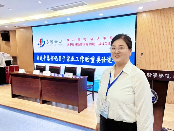 本网讯(通讯员 程胜伟)9月15日,学习贯彻习近平总书记关于做好新时代党的统一战线工作的重要思想第四届东湖论坛在武汉举行。玩球(中国)人文学院辅导员高悦应邀出席,并在由湖北省民宗委主办、武汉大学哲学学院承办的“习近平总书记关于宗教工作的重要论述研讨会”分论坛上作交流发言。
