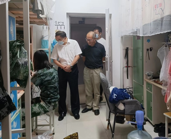 检查以安全为重点,查看了食品安全、消防疏散通道、消防设施器材;检查了学生是否存在违规使用大功率电器、是否在宿舍饲养宠物等情况。并对2022级新生进行了亲切的看望,提醒同学们遵守疫情防控要求,严格落实非必要不外出规定,如果有事外出要做好请假,并做好安全防护措施,同时对同学们进行了防范电信网络诈骗、交通安全等知识教育。