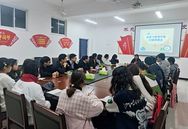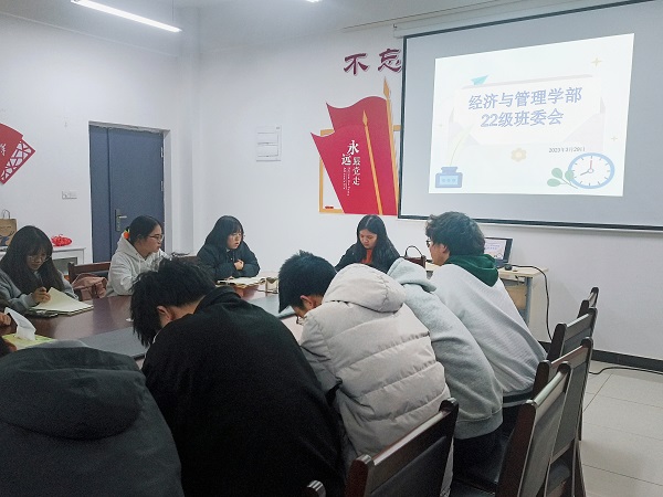 3月29日18:30,经济与管理学部于2号实验楼213召开了2022级班委述职大会。参加本次会议的有经济与管理学部辅导员吕彩云老师、学生助理张燕、22级全体班委。