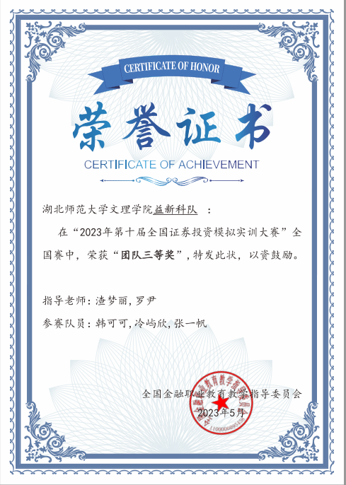 由全国金融职业教育教学指导委员会组织的2023年第十届全国证券投资模拟实训大赛在5月12日顺利结束。此次大赛是以证券业为背景,基于证券从业者所应具备的行业知识、基本业务技能及实操技能等设计的综合实训大赛。共有本科组296所院校的13711支队伍(每队三人),共41133人参赛,职教组226所院校的6500支队伍、19500人参赛。