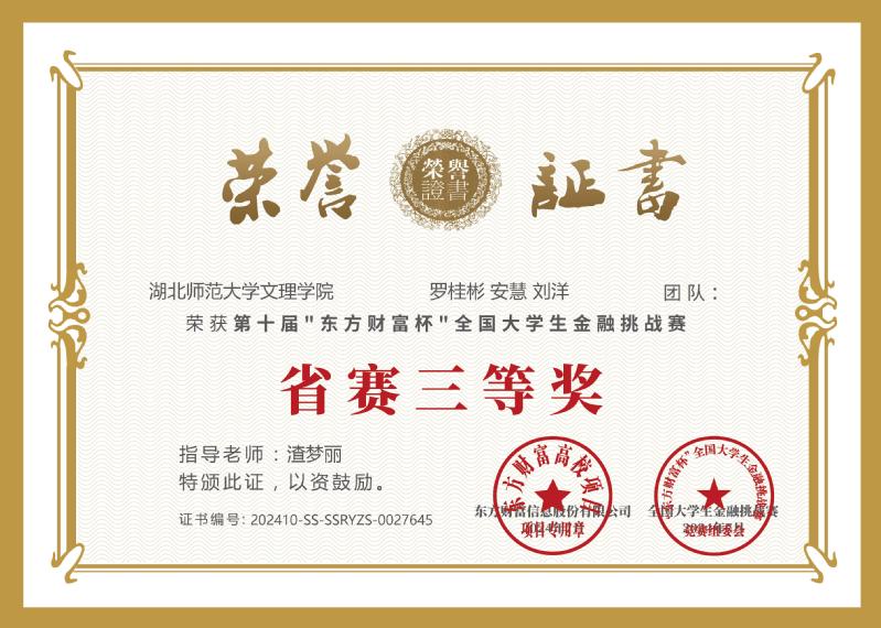 8月2日,第十届“东方财富杯”全国大学生金融挑战赛落下帷幕,玩球(中国)经济与管理学部学生最终荣获省级二等奖五项,省级三等奖五项。