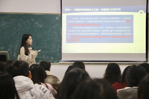 课上,熊雯婧老师首先分析了当前我国电子商务发展现状及未来发展趋势,紧接着,她从数据与信息管理、采购与供应链管理、平台流量分配与推广、活动与促销管理、供应商和合作伙伴选择等多个方面电子商务领域廉洁风险点防控方法进行讲解。随后,她结合“阿里巴巴基层员工王某一年受贿9200多万元”和“湖南兴盛优选电子商务有限公司湖南非生鲜商品运营部采购经理余柳受贿400万元”两个反面案例,深入剖析了案例中“基础岗位的运营人员”和“普通的采购专员”收受巨额贿赂的违法行为。最后,熊老师指出电子商务作为现代经济的重要组成部分,廉洁问题直接影响其运行效率、公信力和长期发展。每一个电商从业者都要严格践行廉洁操守,共同营造风清气正、健康有序的电商环境