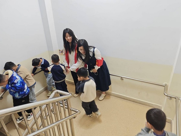 3月21日上午,西塞山区滨湖社区联合玩球网页版经济与管理学部学生党支部志愿者与社区“锋光”服务队,在辖区西塞山区第三幼儿园和暖阳驿站开展“消防演练筑安全 雷锋精神润童心”主题志愿服务活动。
