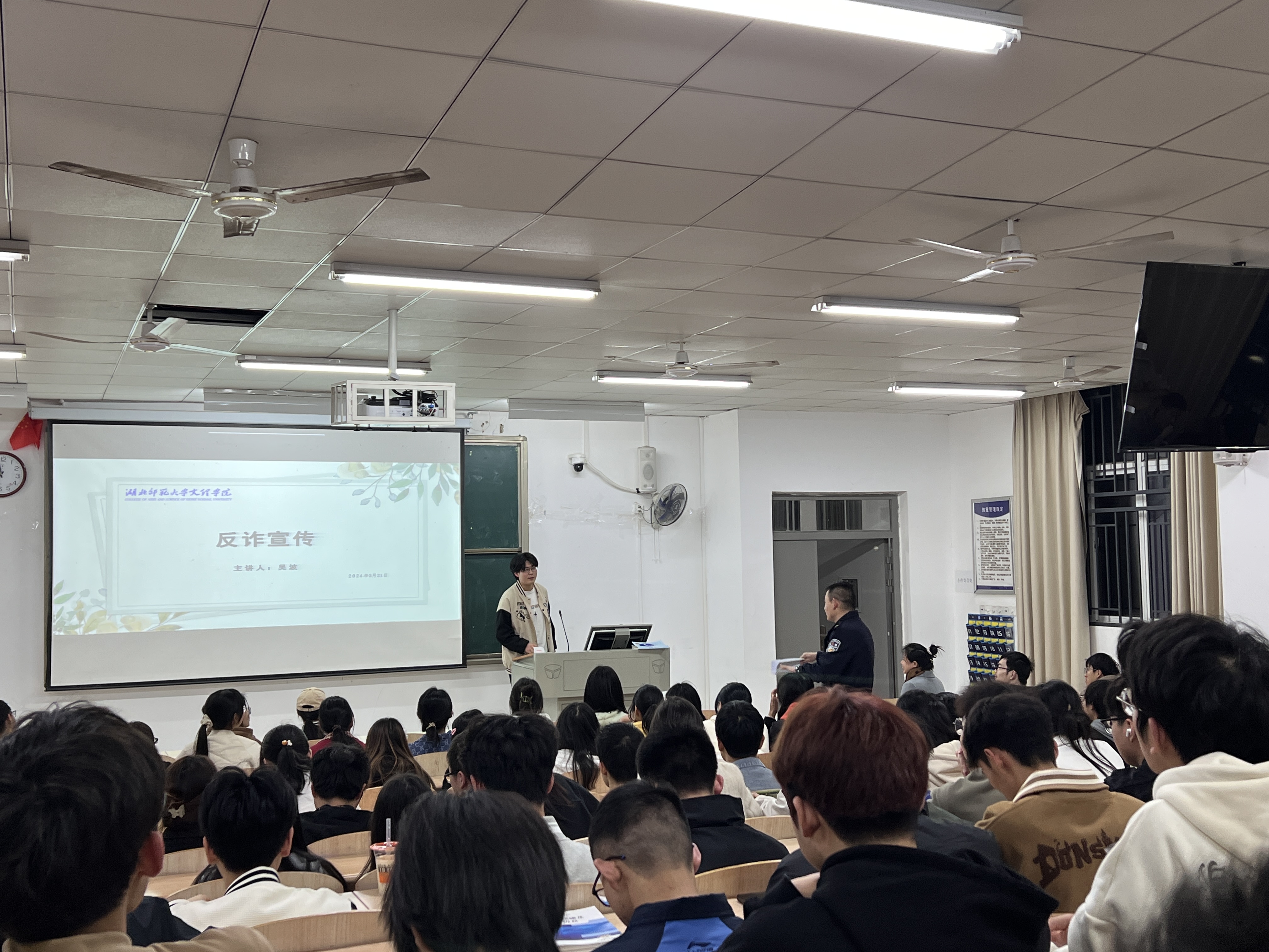 为深入推动玩球(中国)创建平安校园工作,不断提升广大师生防诈意识和防骗能力,3月21日晚上7时,理工学部特邀汪仁派出所民警在教学楼1B-101,为约200名青年学子举行了“反电信诈骗”主题讲座,理工学部团总支副书记李哲昊老师,辅导员刘婉婉老师、胡兰捷老师、陆曦老师参加了活动。