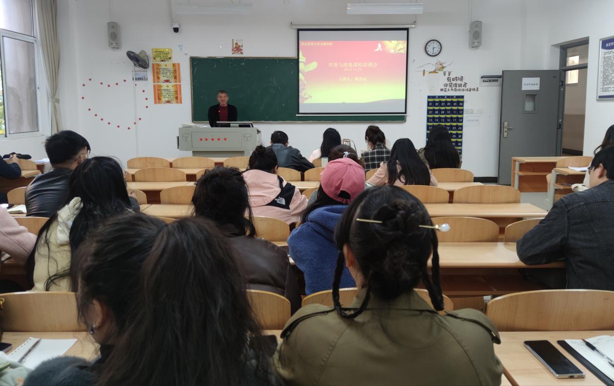 为切实提高形势与政策课教学质量,确保本学期教学工作的顺利开展,1124日下午,马克思主义学部在1A206召开学期形势与政策课教师培训会。此次会议由马克思主义学部主任周青山主持,学校全体形势与政策课教师参会。
