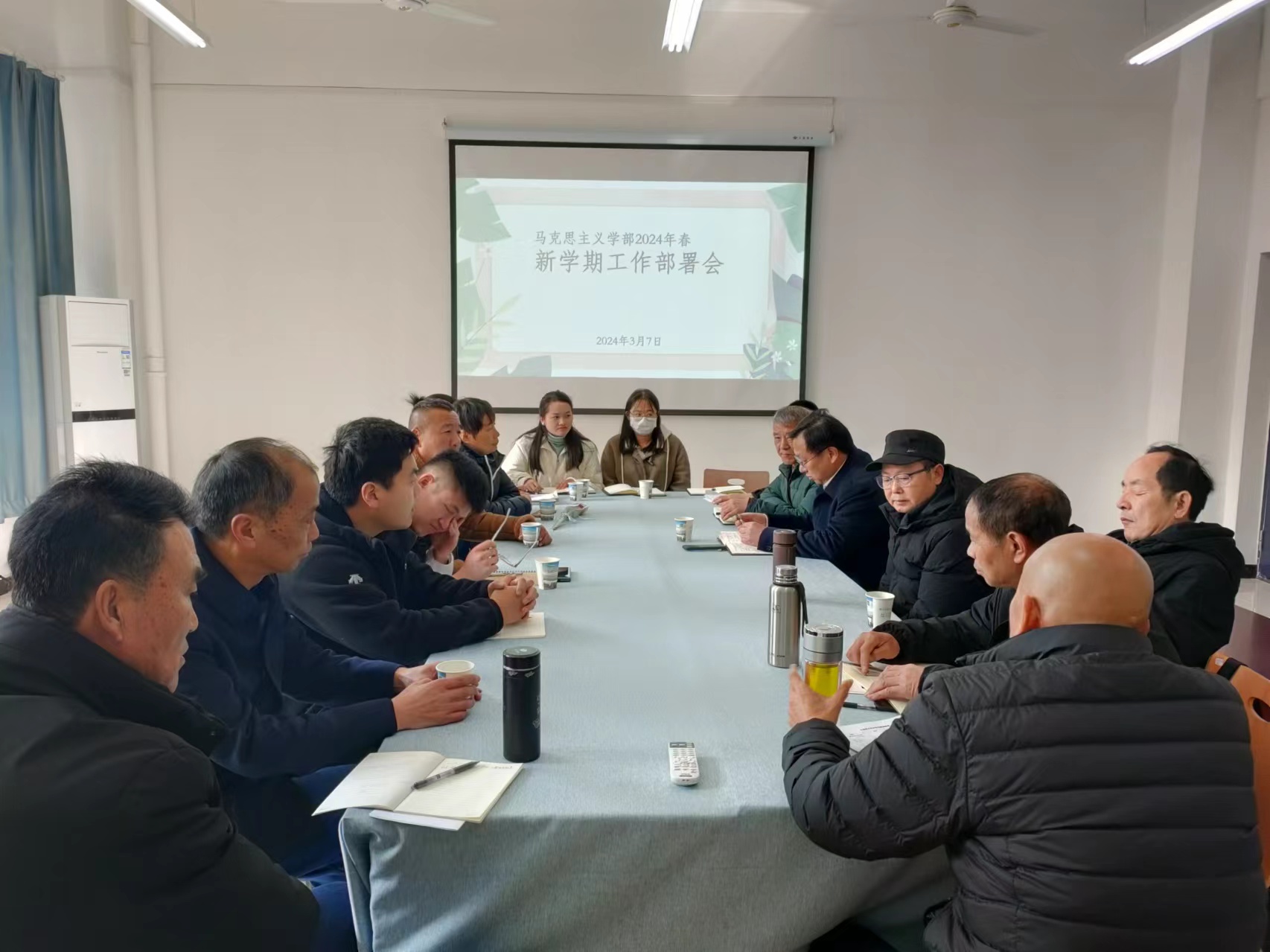 202437午,马克思主义学部在3号实验楼208会议室召开新学期工作部署会参加此次会议的有校党委书记杨邓红和学部全体教职工学部主任周青山主持会议