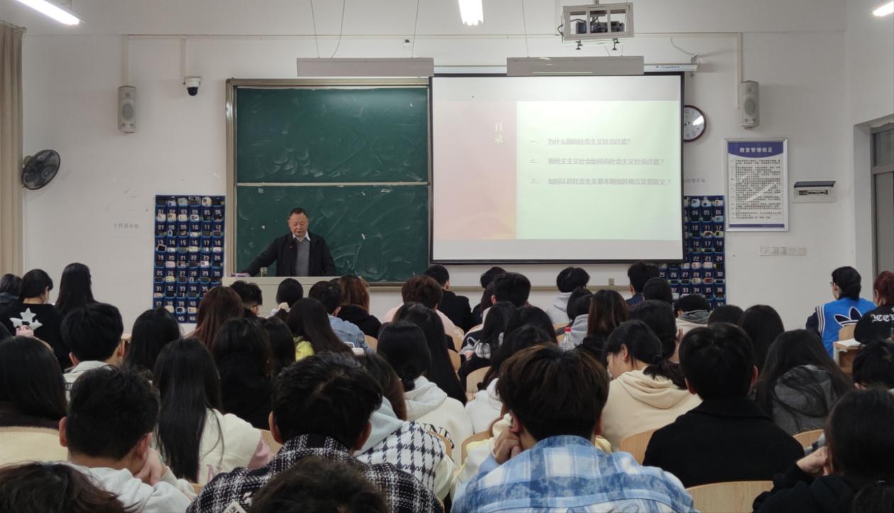李老师主讲《毛泽东思想和中国特色社会主义理论体系概论》,他社会主义改造理论这一教学点进行了深入浅出的讲解。整个教学旁征博引,说理透彻,并通过极具亲和力的语言进行课堂互动,激发了学生的学习积极性,展示了扎实的教学基本功。该示范课得到了观摩教师的一致好评。