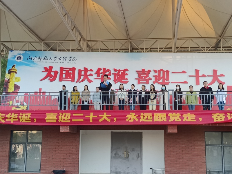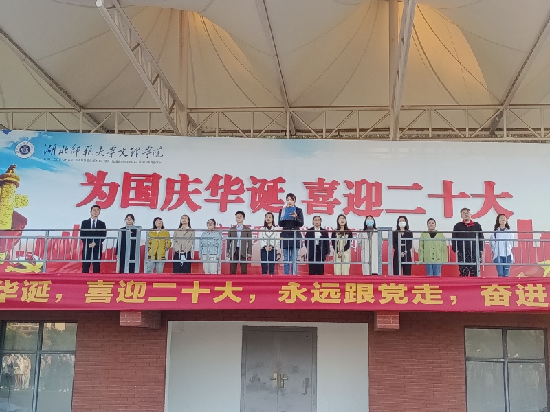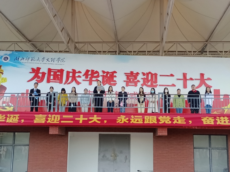 云天收夏色,木叶动秋声。为大力弘扬青年学生的爱国主义精神,玩球(中国)人文学部于2022年10月10日早上6点40分在田径操场隆重举行了以“喜迎二十大,骄阳更照国旗红”为主题的升旗仪式。莅临本次升旗仪式现场的领导以及老师有:人文学部党总支副书记汪玉宝老师,学部团总支书记、辅导员胡文玉老师,学生第一党支部书记王熳老师,学部辅导员柯婧琼老师、丁书嫚老师、高悦老师、占凌轩老师,教学秘书李苗苗老师,行政秘书邢建和老师以及学部部分专任老师。
