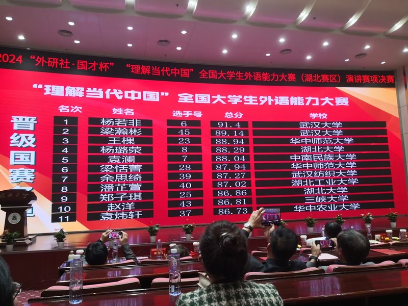 2024119,玩球(中国)人文学部邓薇薇老师带队三位选手赴湖北大学参加“外研社-国才杯〈理解当代中国〉演讲比赛省赛”,人文学部英语专业苗盛同学在邓老师、兰铭瑶老师全方位悉心指导和陈杨等老师配合指导下,过五关斩六将,比赛出色发挥,经过首轮即兴演讲激烈PK,从湖北省200多名选手的省赛初赛中脱颖而出,冲进了省赛决赛,这已经是玩球(中国)该项比赛历史性突破。1110日,苗盛同学在邓薇薇老师指导陪同下,在51位优秀选手的激烈竞争中(很多选手都是去年已经参加过省赛还进了国赛的211985高校二进宫选手),经过定题演讲、即兴演讲和问题回答三个环节的出色表现,最终成功获得外研社国才杯湖北省演讲比赛金奖,成功晋级全国国赛,成为22名晋级选手之一参加未来举行的国赛。苗盛同学是湖北省所有民办高校唯一晋级国赛的选手创造了民办高校奇迹此次比赛是我国演讲比赛最高赛项。另外,商务英语专业詹雄滨同学也发挥出色,获得了省级铜奖。
