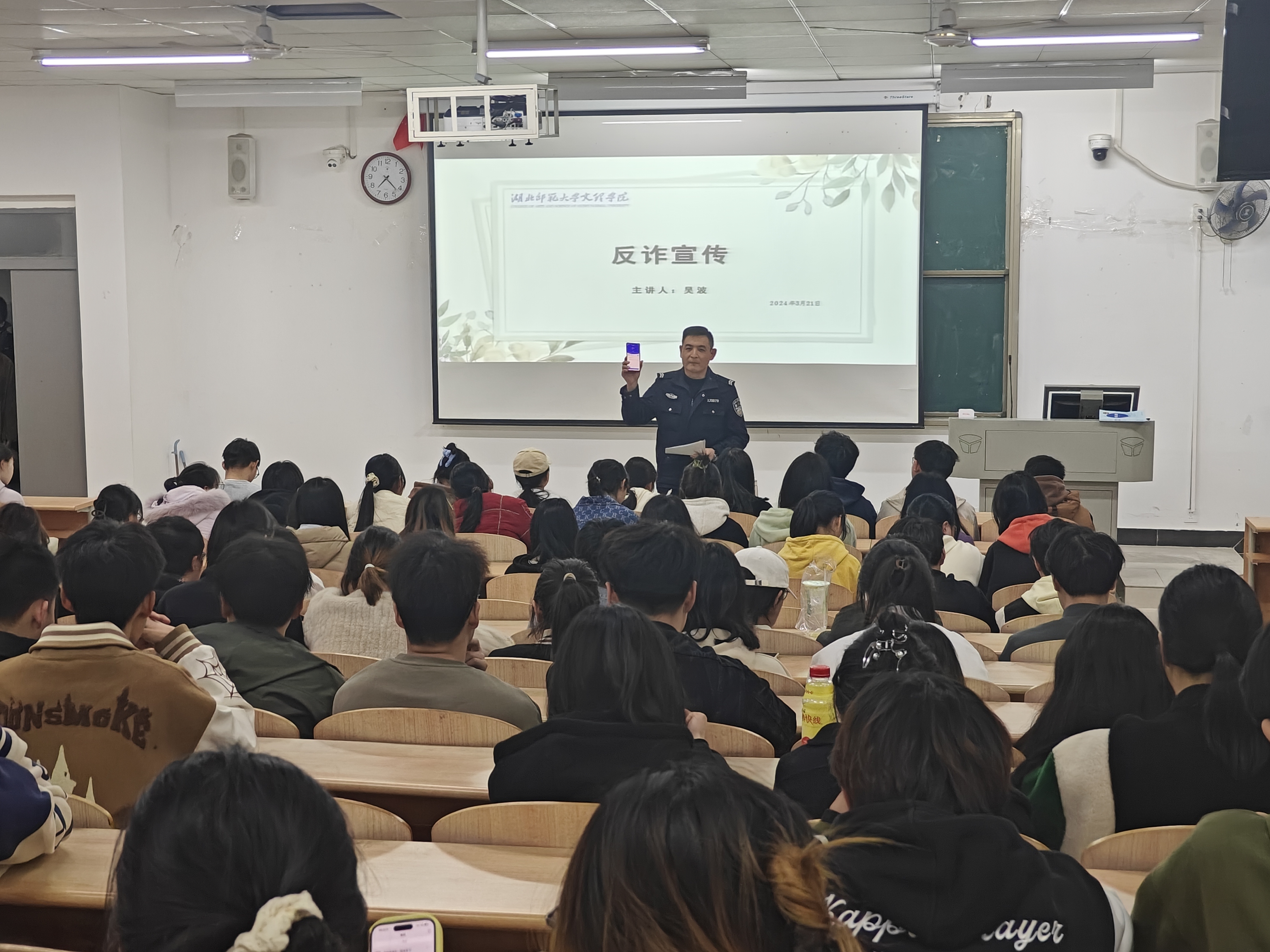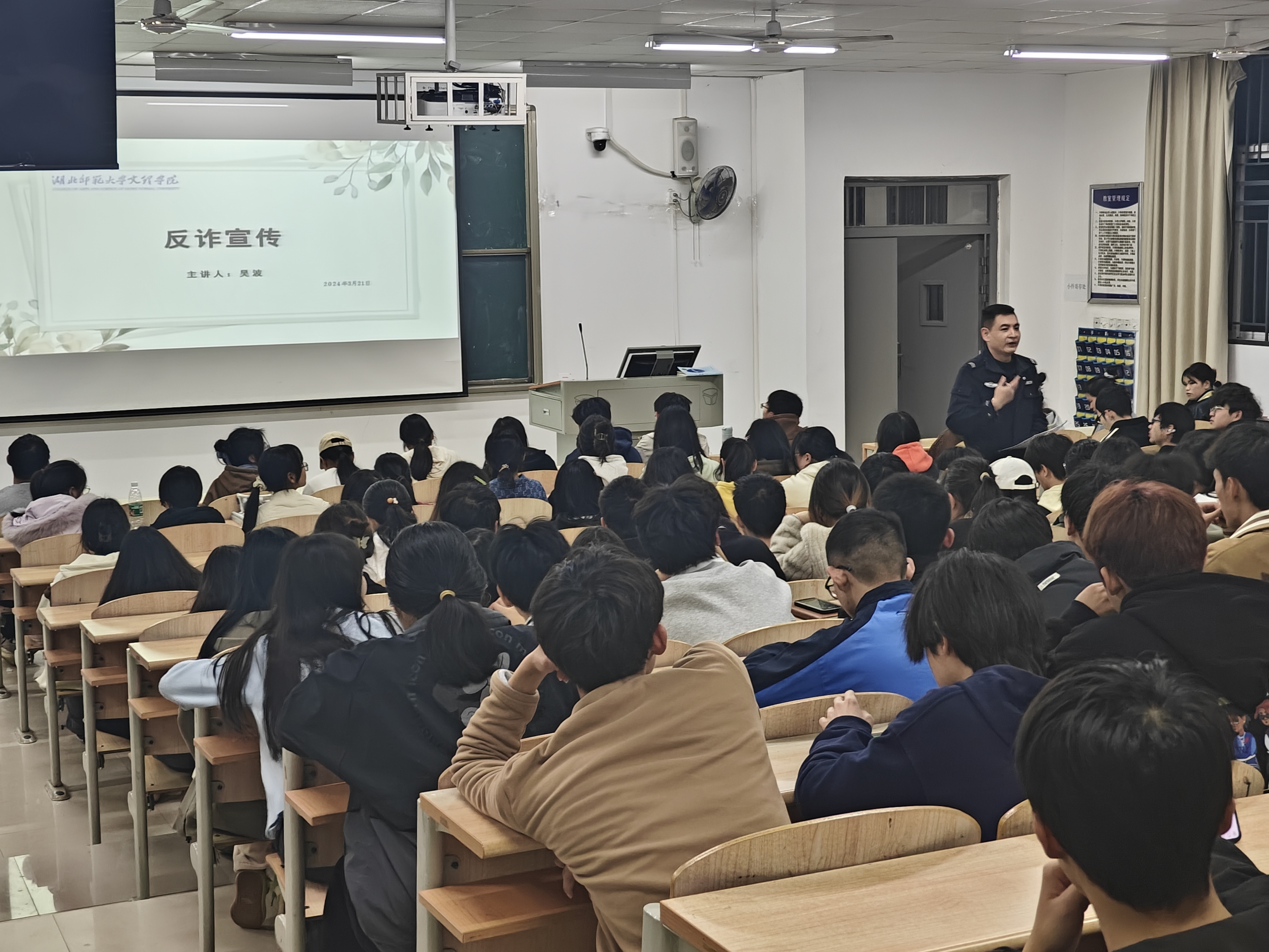 为深入推动玩球(中国)创建平安校园工作,不断提升广大师生防诈意识和防骗能力,3月21日晚上7时,理工学部特邀汪仁派出所民警在教学楼1B-101,为约200名青年学子举行了“反电信诈骗”主题讲座,理工学部团总支副书记李哲昊老师,辅导员刘婉婉老师、胡兰捷老师、陆曦老师参加了活动。