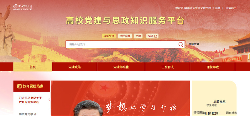 平台介绍:依托知网全面权威知识资源,为高等院校的教育党建政策研究、高校党建标准化任务分解与落实、三全育人工作、思政课程与课程思政建设等提供所需的知识情报与经验案例。