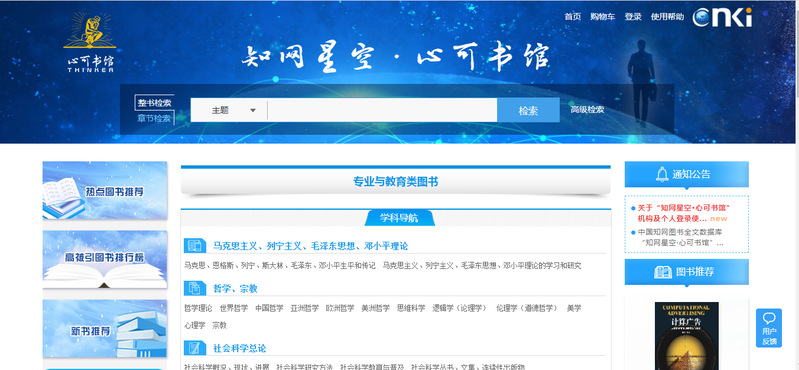平台介绍:是中国知网基于海量数字资源和全球各行业2亿多专业读者群,运用知识关联、智能处理、大数据分析等先进技术,针对数字图书的特点与应用需求,为各出版机构精心打造的网络化出版发行平台,是用户选书购书的专业助手,是读者发现新书好书、研学创新的可心书馆。